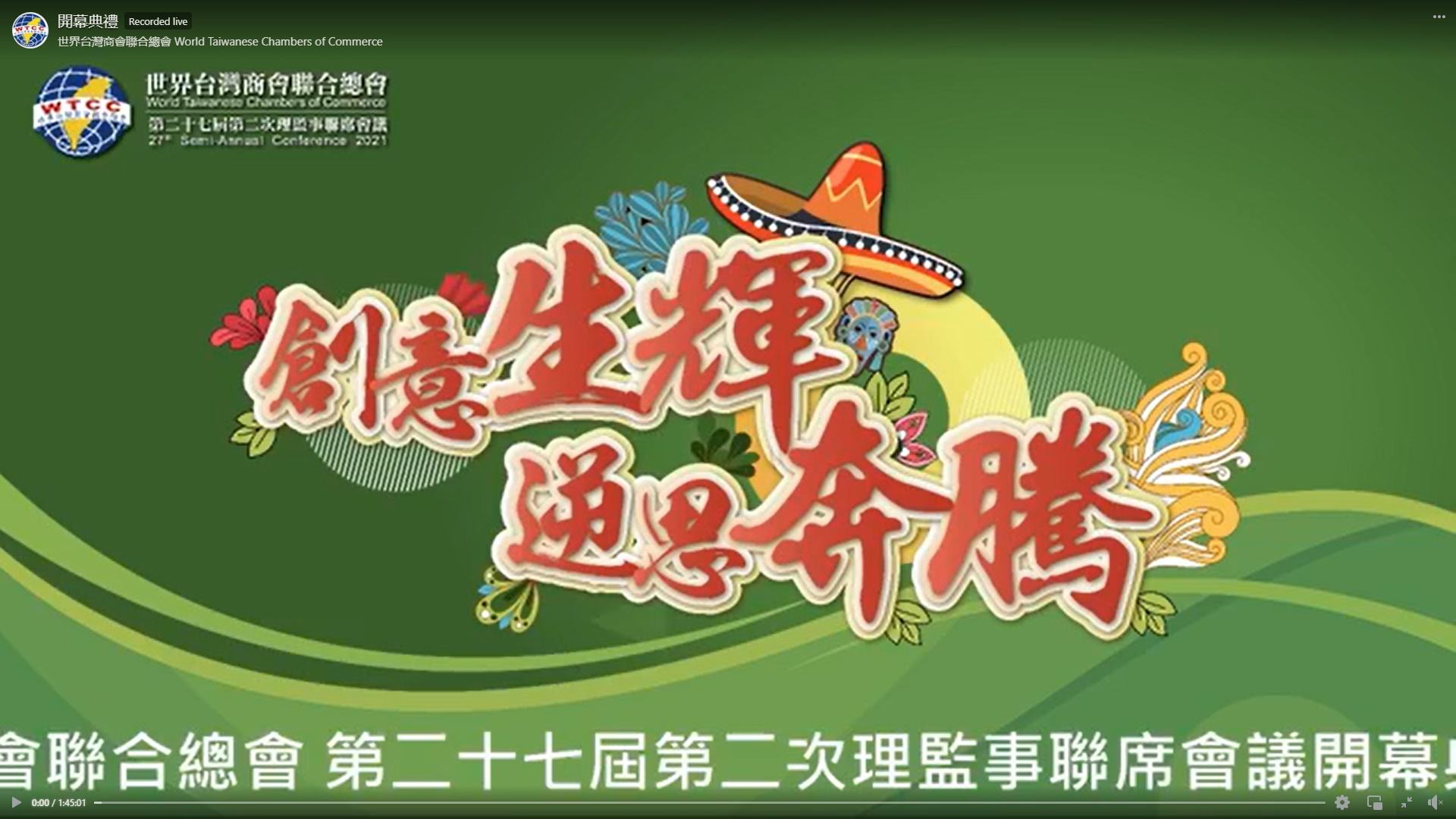 世界台灣商會聯合總會第二十七屆第二次理監事聯席會議 開幕式直播 https://www.facebook.com/watch/live/?ref=watch_permalink&v=128071429265603