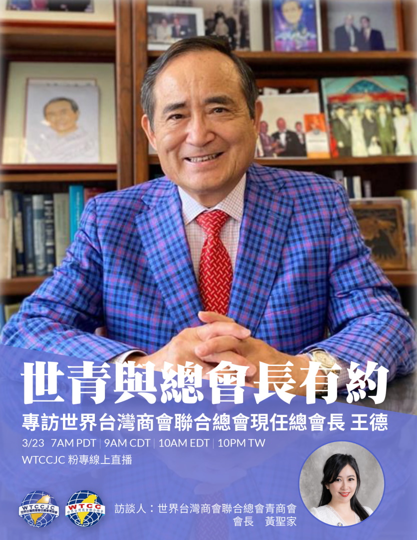 ⭐️本次與總會長有約的首播將由 世界台灣商會聯合總會青商會第12屆會長 黃聖家 Wtccjc 12th President - Sophia親自主持訪問,讓大家一探王德總會長胼手胝足、一路努力奮鬥的歷程和箇中秘訣。